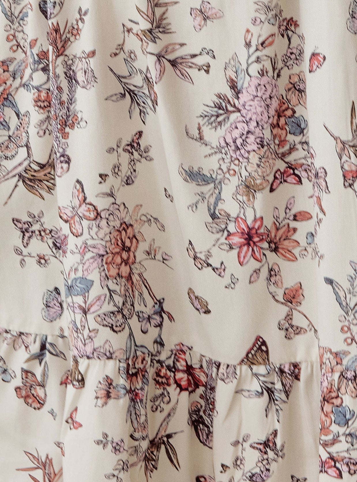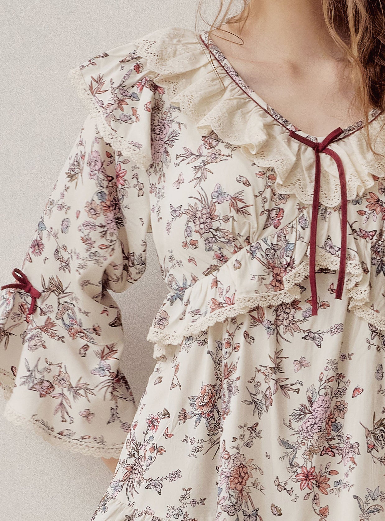 Crafted from a silky, lustrous modal–cotton blend, this two-piece homewear set features an elegant butterfly and floral motif.